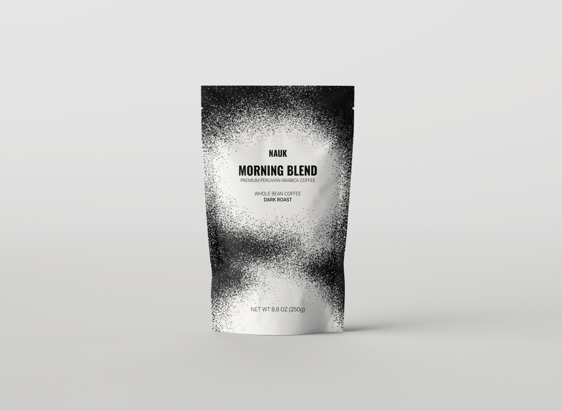The coffee powder, an inspiring element, is transformed into a distinctive graphic motif.